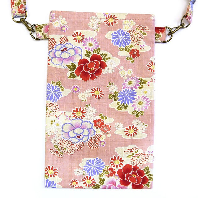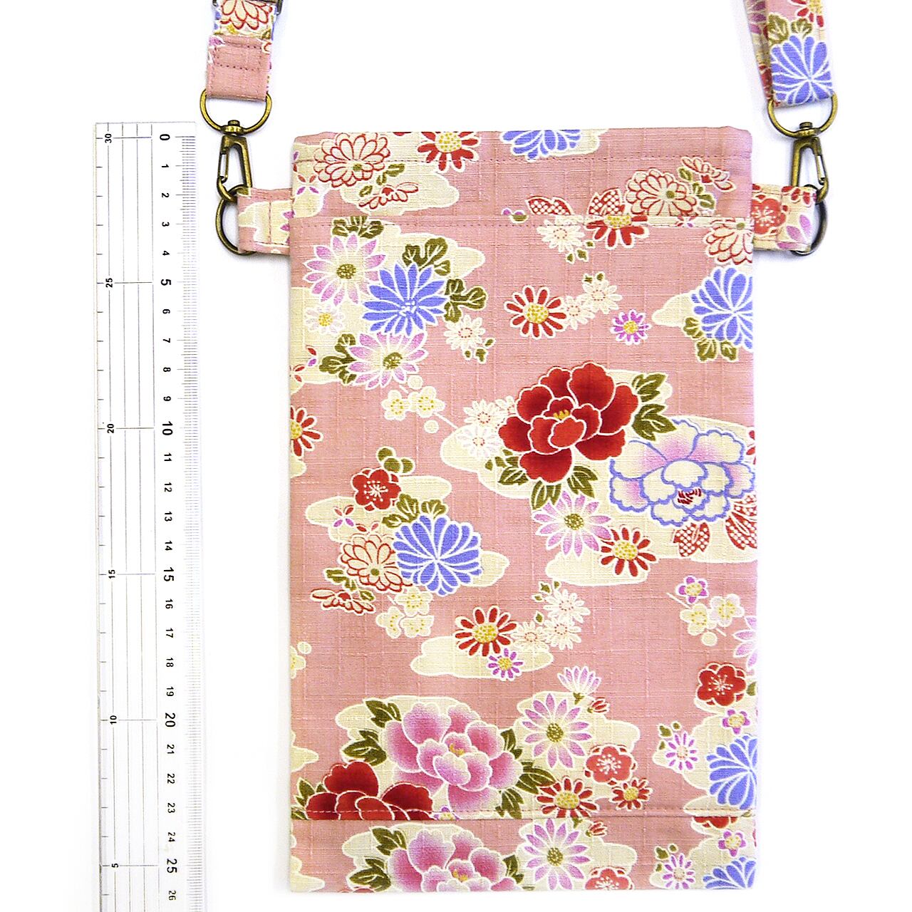 ショルダーは付け外しと長さ調節が可能で、お好みに合わせてお使いいただけます。内側はシックな緋色でお花やピンクのデザインによく似合いますね。