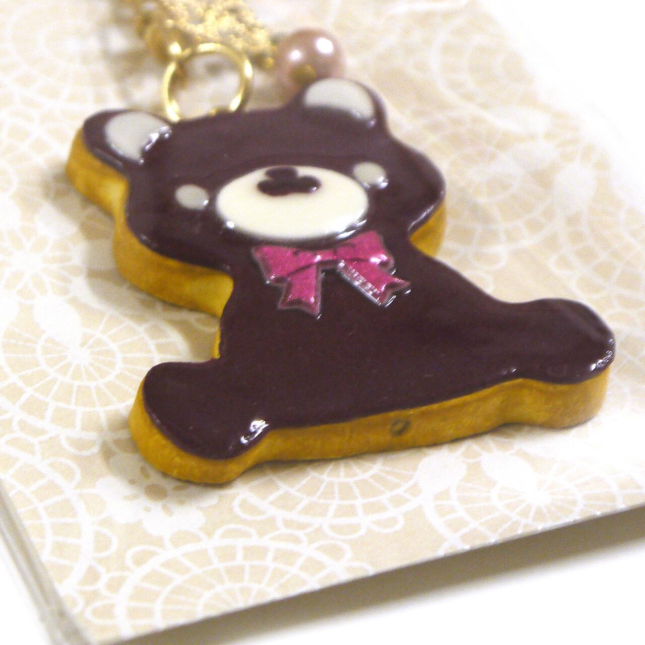 美味しそうなフェイクスイーツとかわいいくまさんが一緒に楽しめる人気作。表面はチョコレート、その下はこんがりクッキーになっています。
