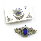 月桂樹をイメージしたヘアクリップ。青い魔導石は夜を、月と葉っぱは月桂樹に纏わる神話を思わせます。
