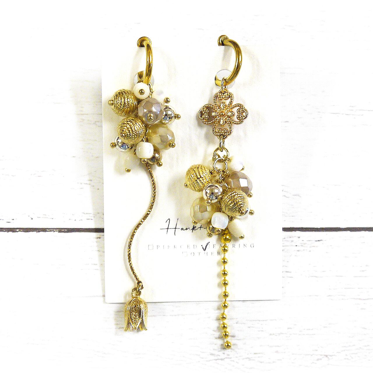 【Hank+Hank】つぶつぶゆらゆらイヤリング(アシンメトリーゴールド)/イヤリング