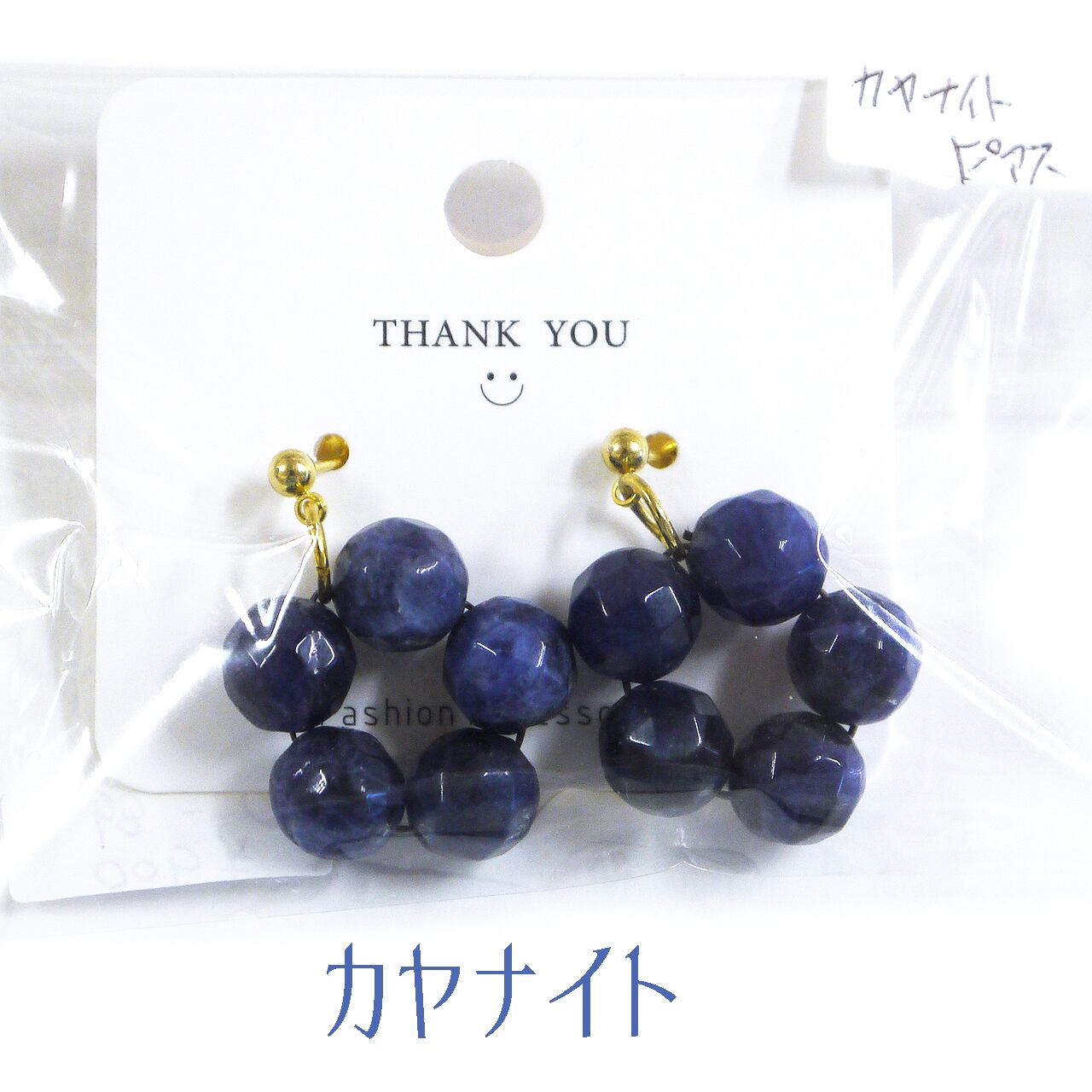 濃紺のカヤナイトと紫のアメジストの二種類。石にはカットが入っており、光を反射してより綺麗に輝きます。