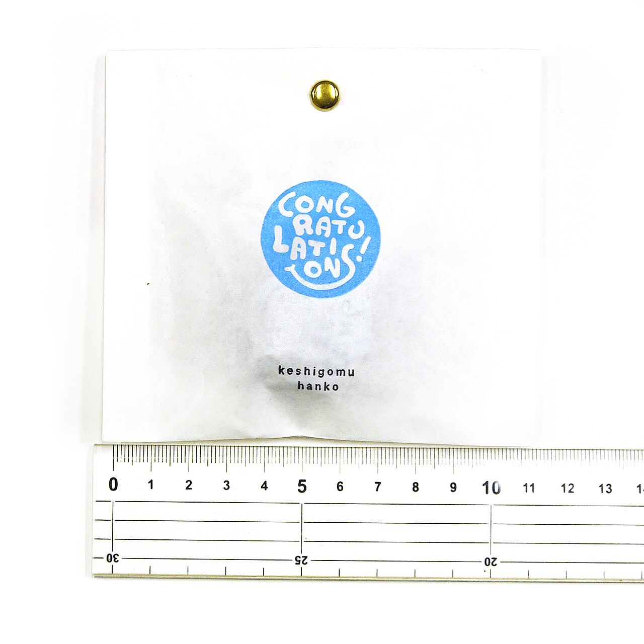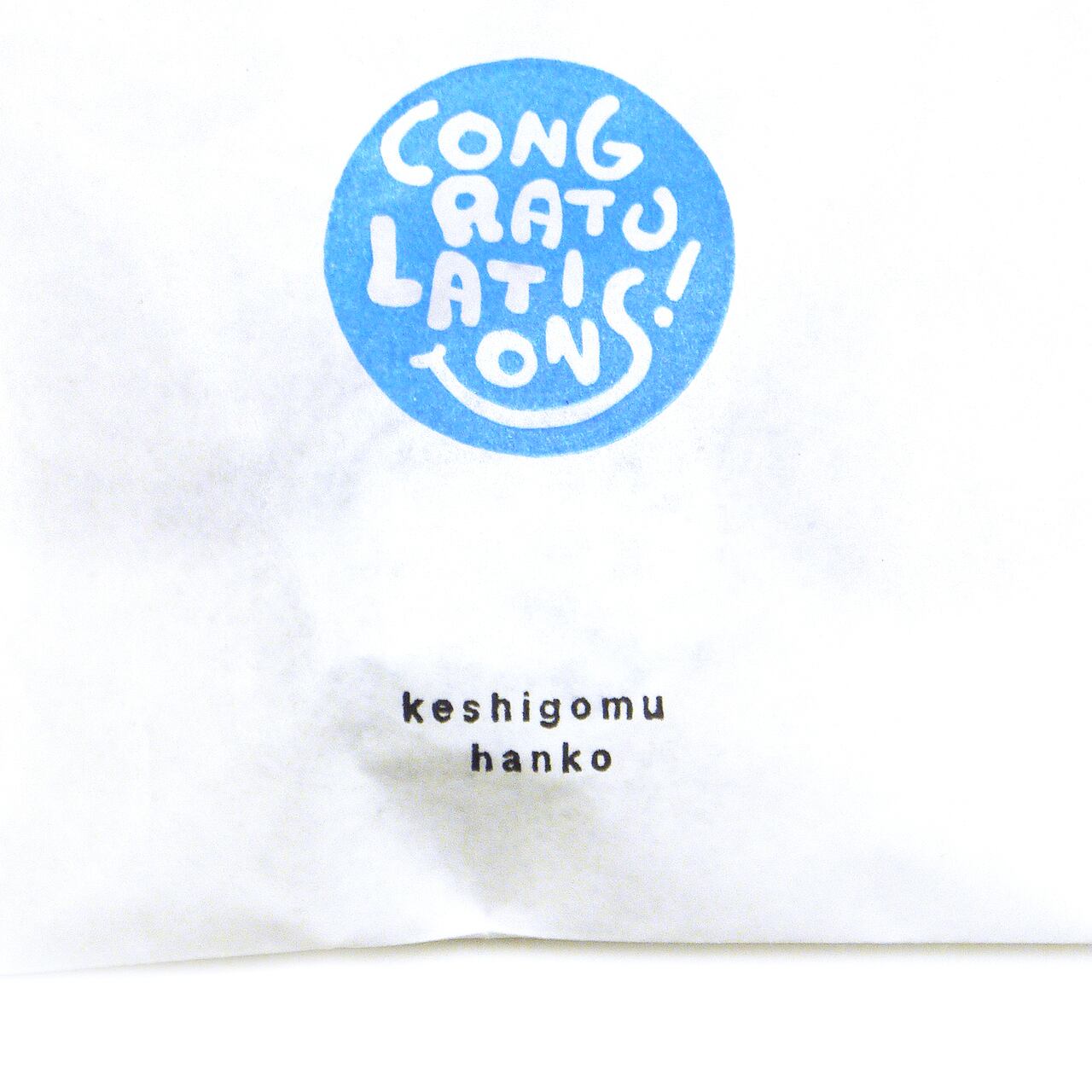丸の中にCongratulations!が書かれた消しゴムはんこです。