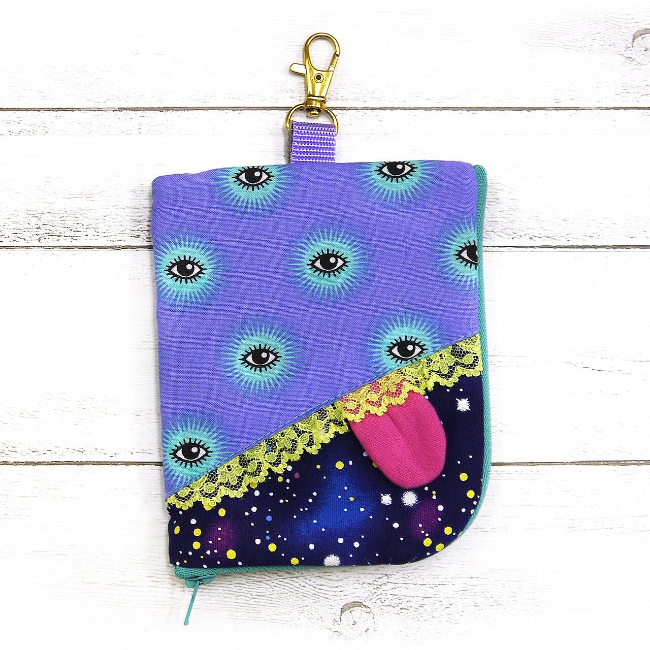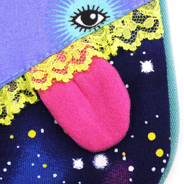 目玉柄の生地にぺろんと出た舌。個性的で思わず見つめてしまう魅力が詰まった作品です。おばけが鍵をしっかり守ってくれます。