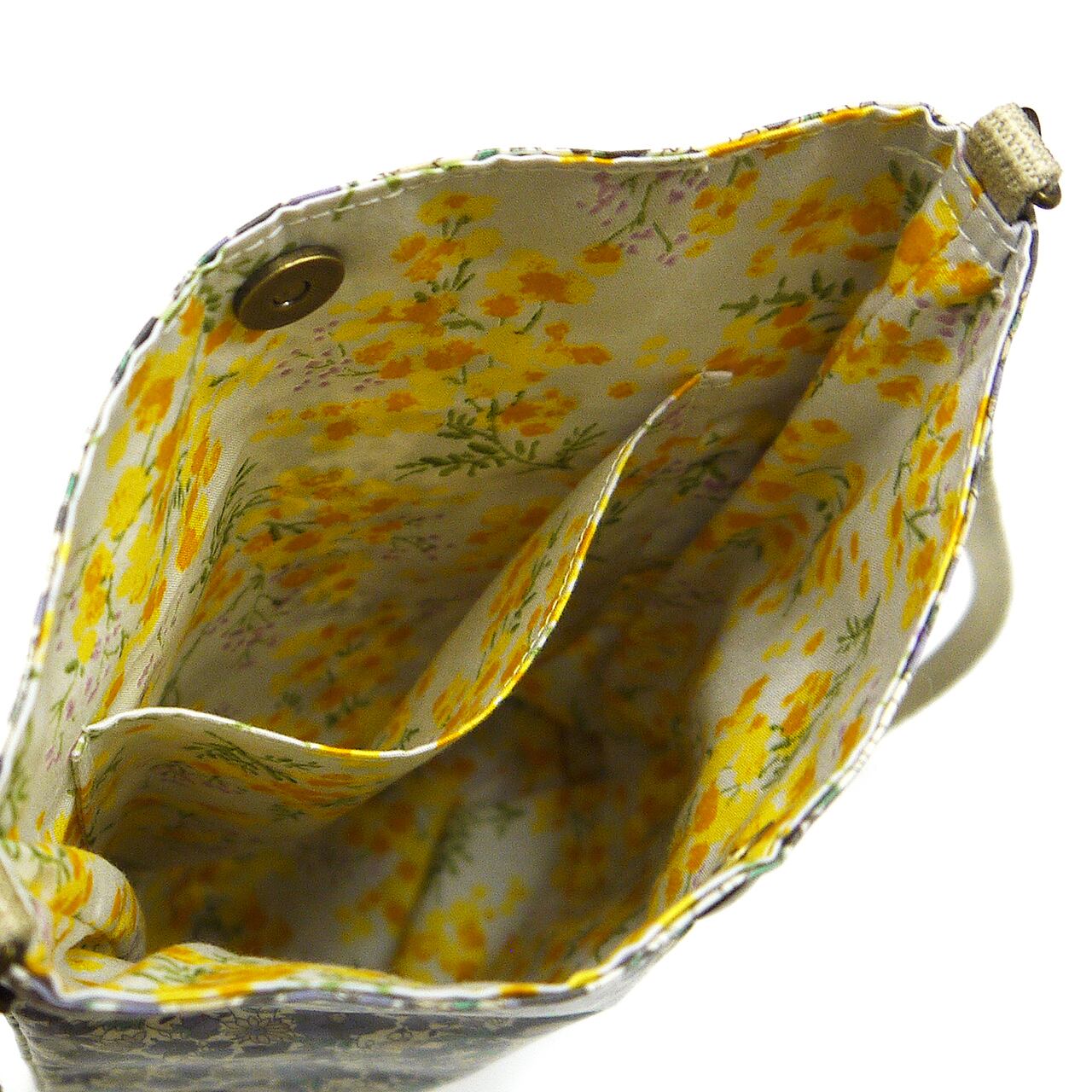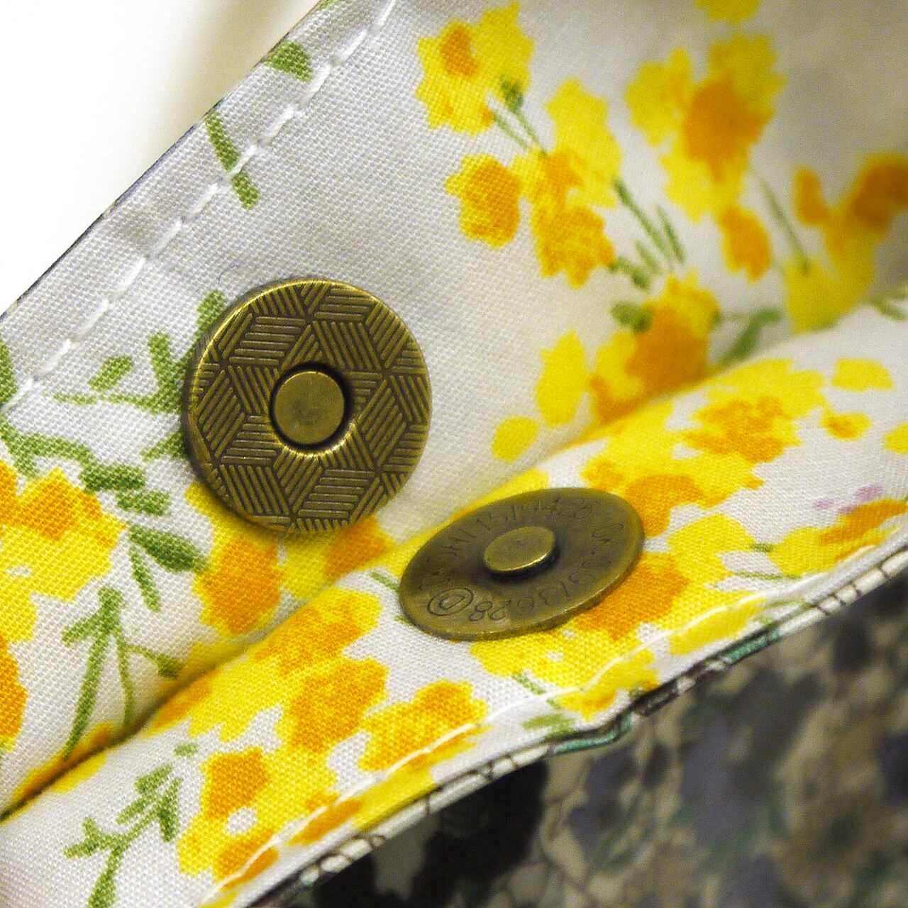 丈夫で水に強いラミネート生地で、お出かけの相棒として安心してお使いいただけます。お子さん用のポーチにもおすすめ。裏地は人気のミモザ柄です。