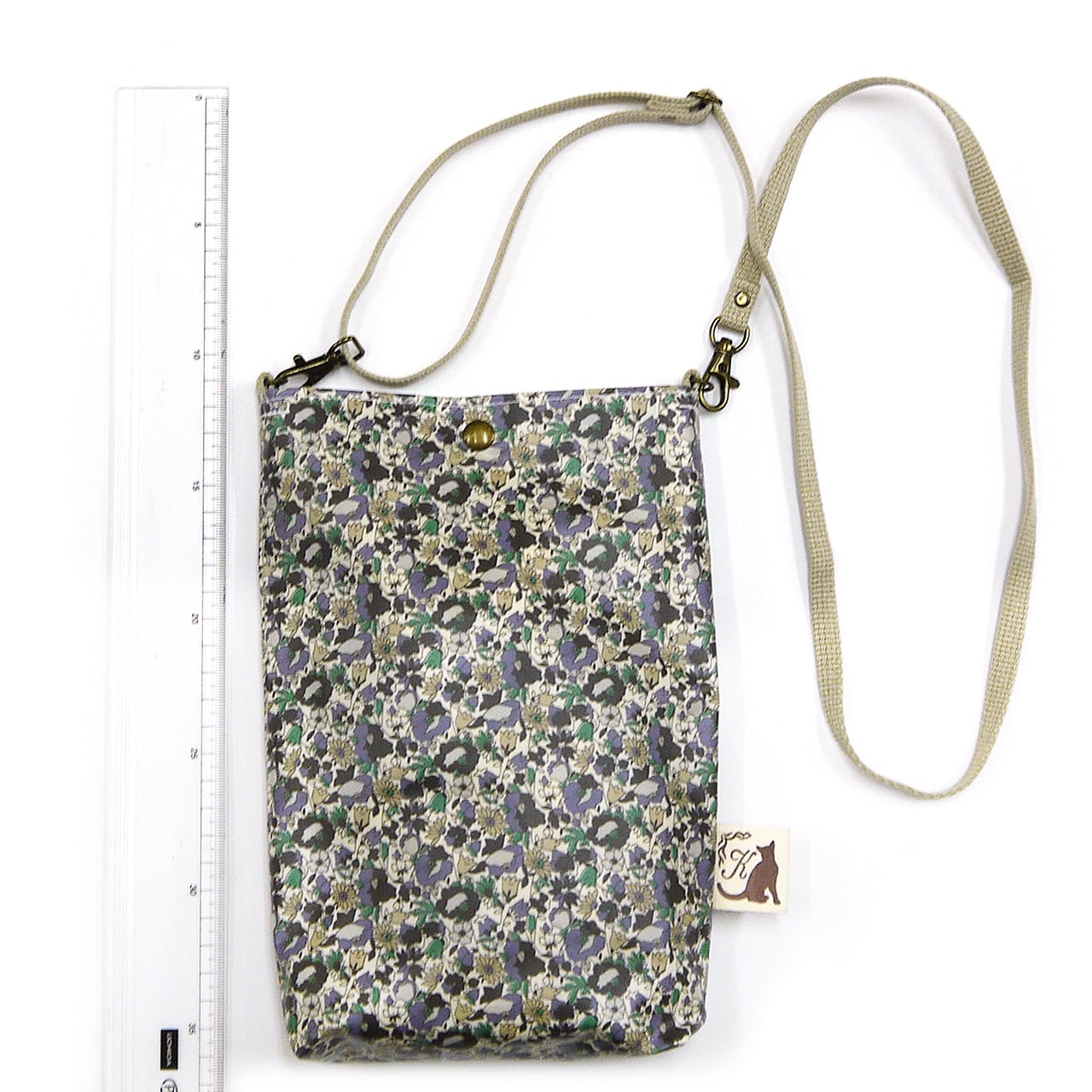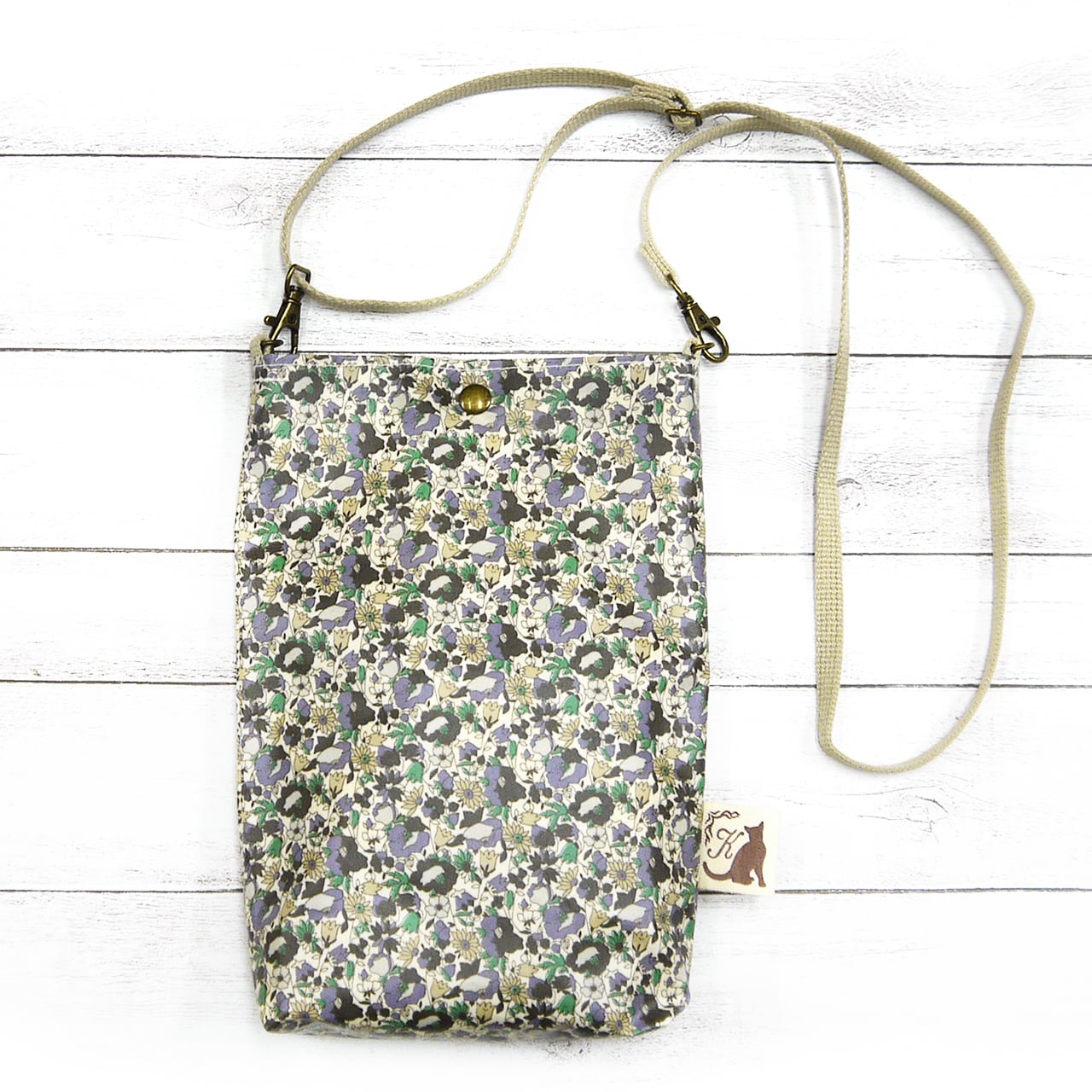 【Kuu工房】ブルーグレー花柄スマホポーチ/バッグ