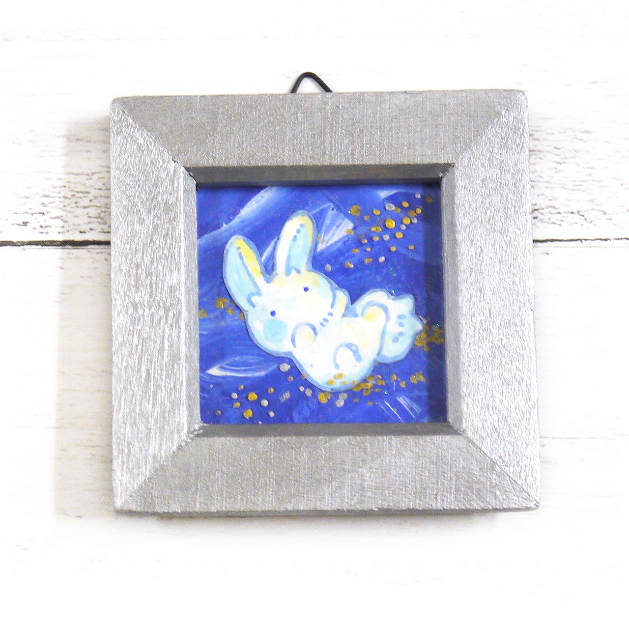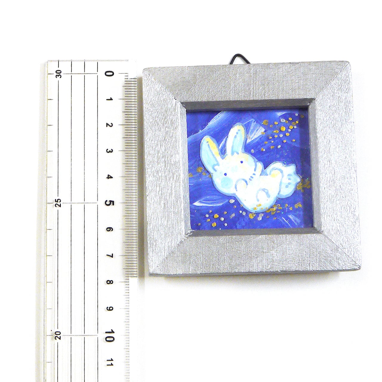 キラキラと輝く絵具が使用され、額も綺麗な銀色に塗装されています。かわいらしさの中に確かな質感が魅力の作品です。