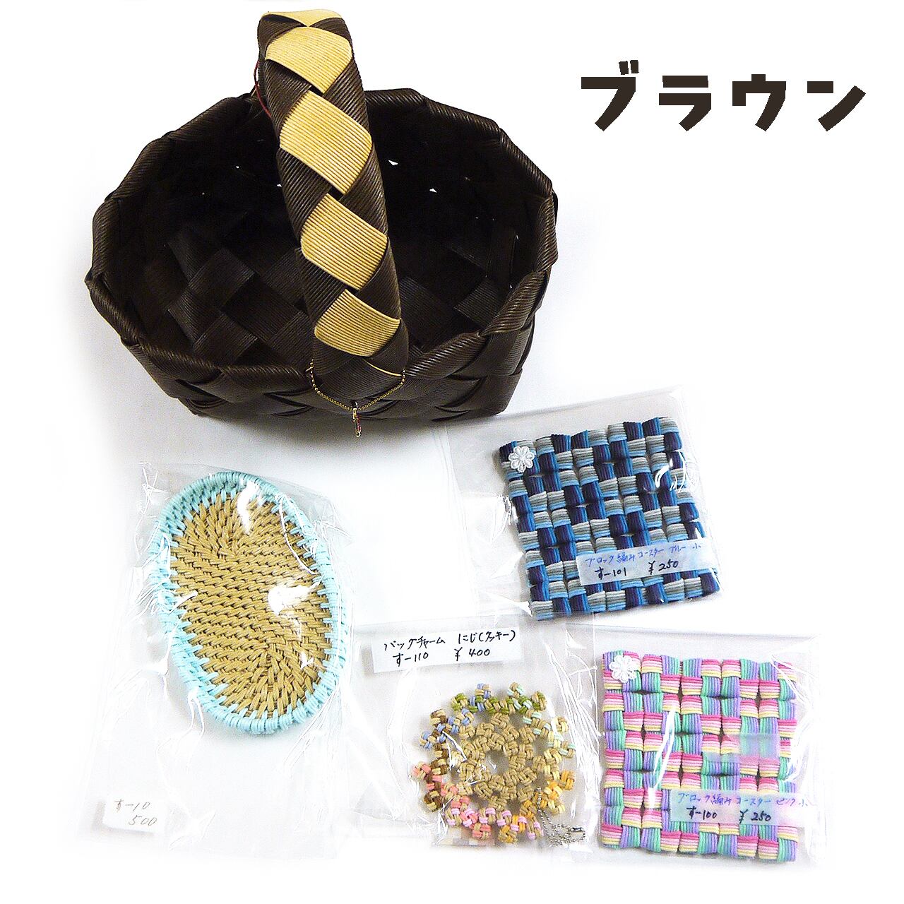 ※お好みのセットを選んでご注文ください。 バスケットの中にクラフト編みグッズが入った福かごです。 カラフルなコースターやトレイなど、実用的で便利なグッズが入っています。水濡れにも強く通気性もよく、とても丈夫です。 【内容】 バスケット コースター×2 トレイ キーホルダー