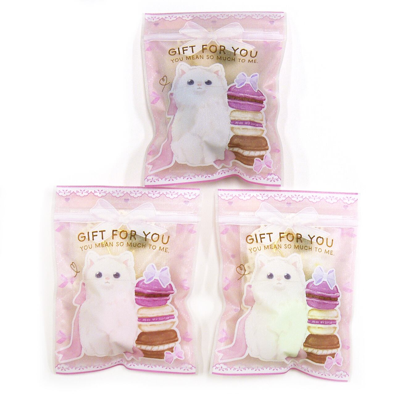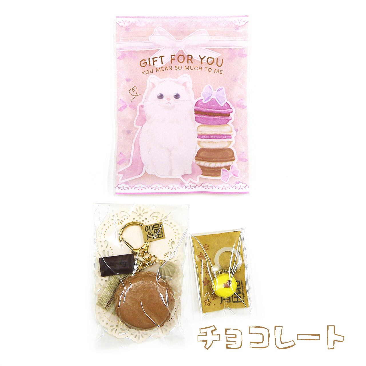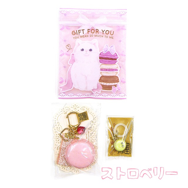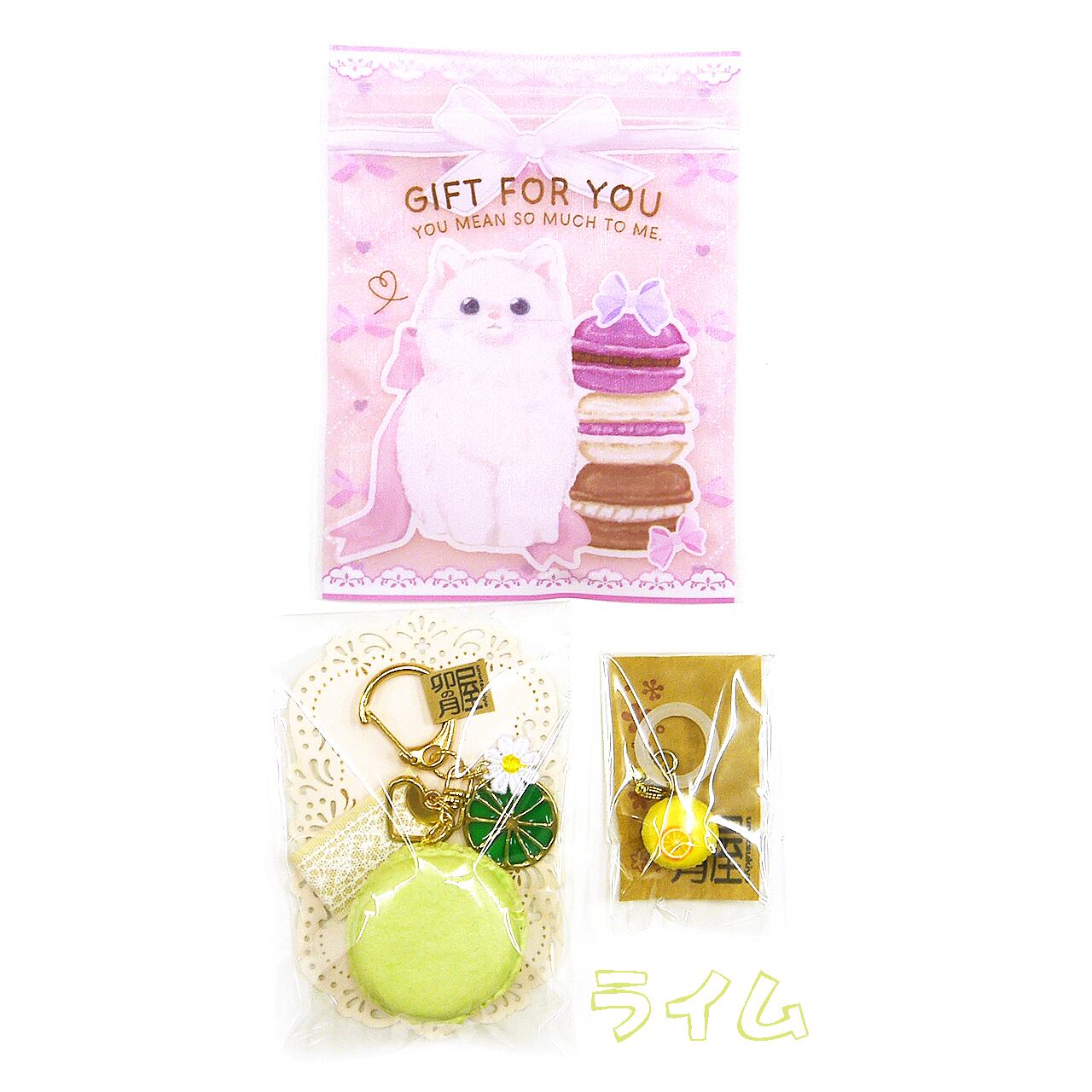 マカロンのキーホルダーとマカロンの目印チャーム入り。袋もマカロンデザインで拘りが詰まったかわいさですね。