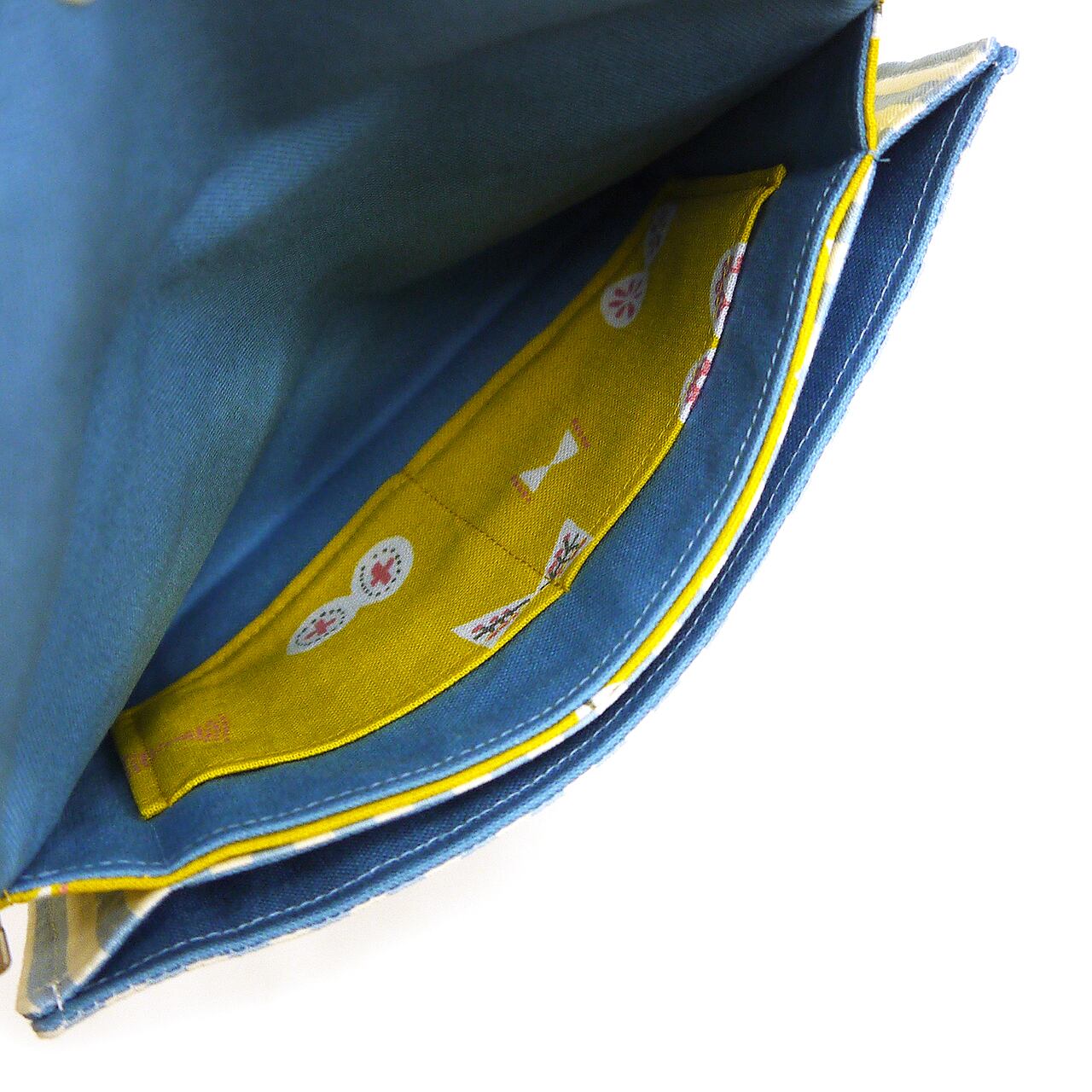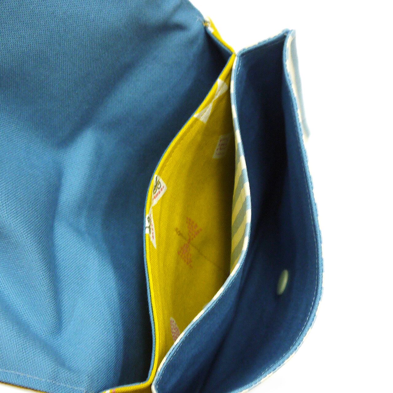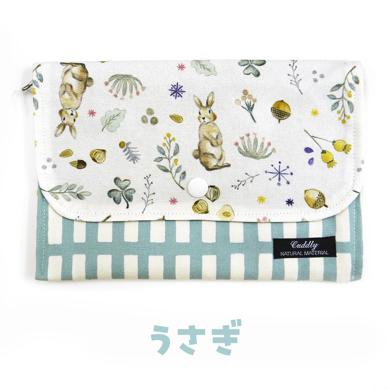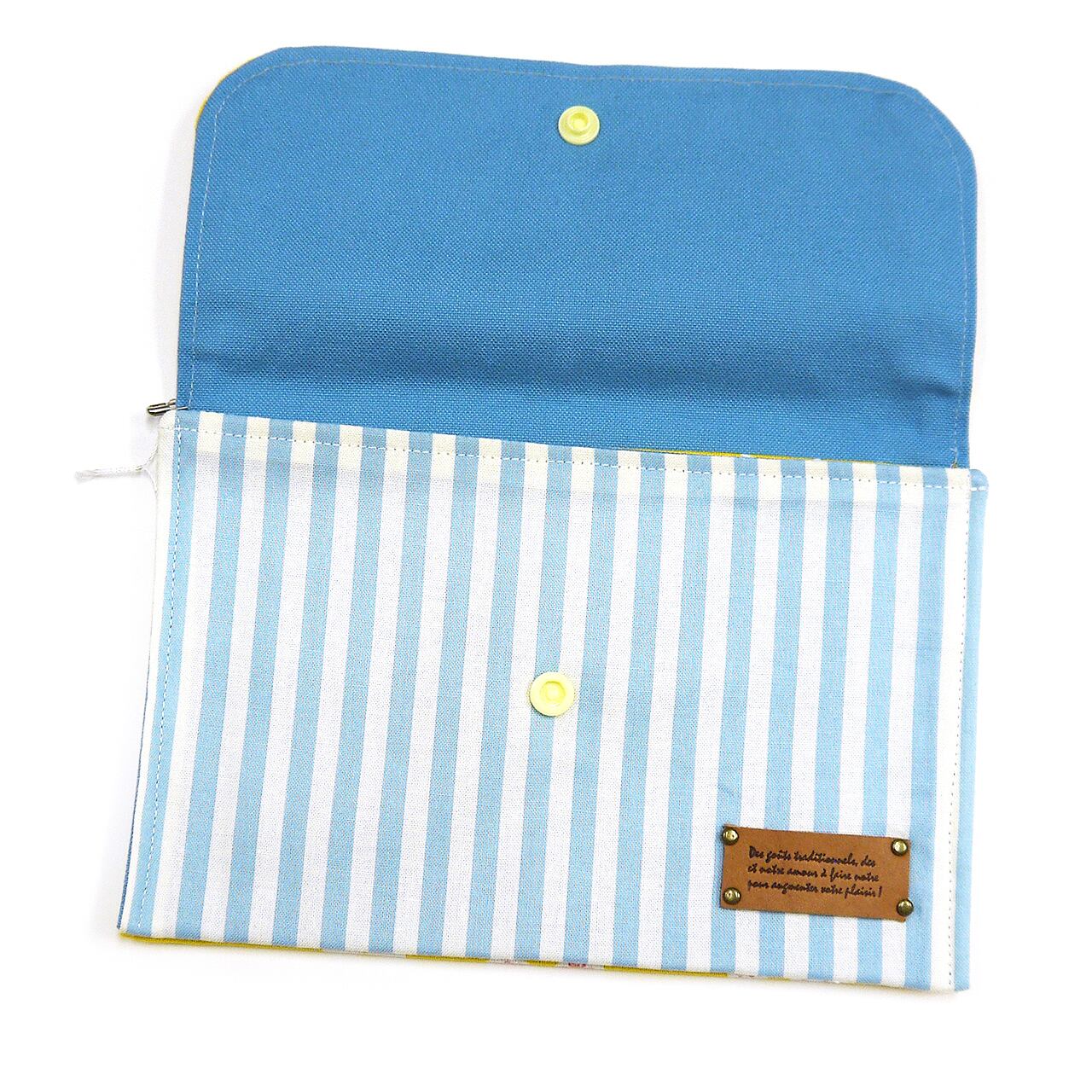 保険証やお薬手帳などの大事なものを入れておくのにいいサイズ。用途によって分類できるのも便利です。口はホックボタンで止まります。