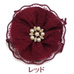 ふんわりかわいい、リボンとレースのお花のコサージュです。