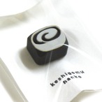 ミニサイズの中に非常に繊細なデザインが確かな技術で彫り込まれた作品。愛媛ではタルトと呼ぶ、餡子を巻いたロールケーキのデザインです。