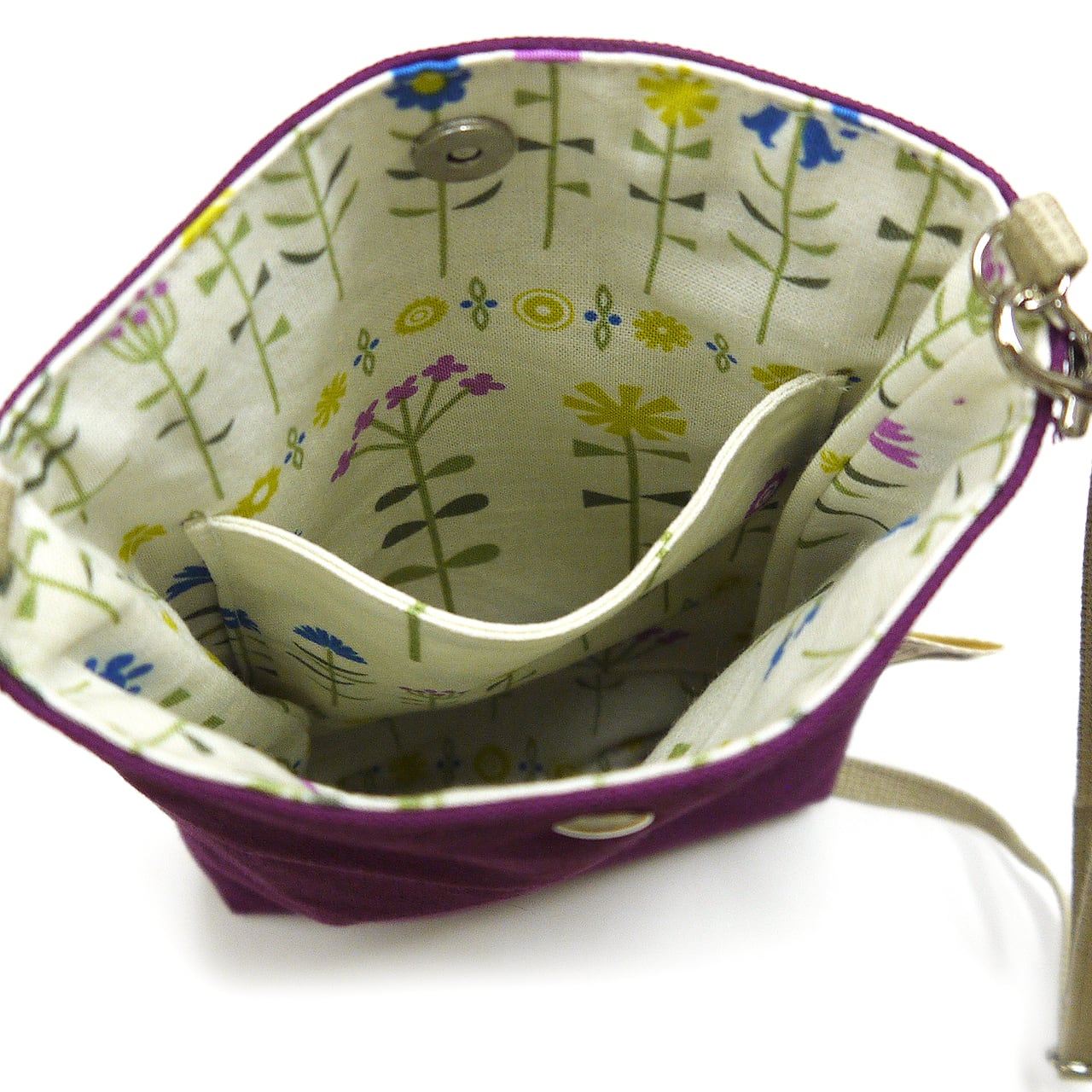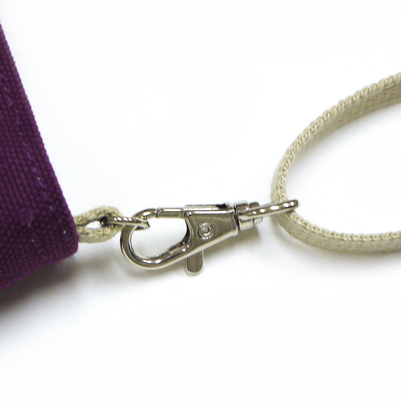 落ち着いた紫の帆布生地を使用したスマホポーチです。