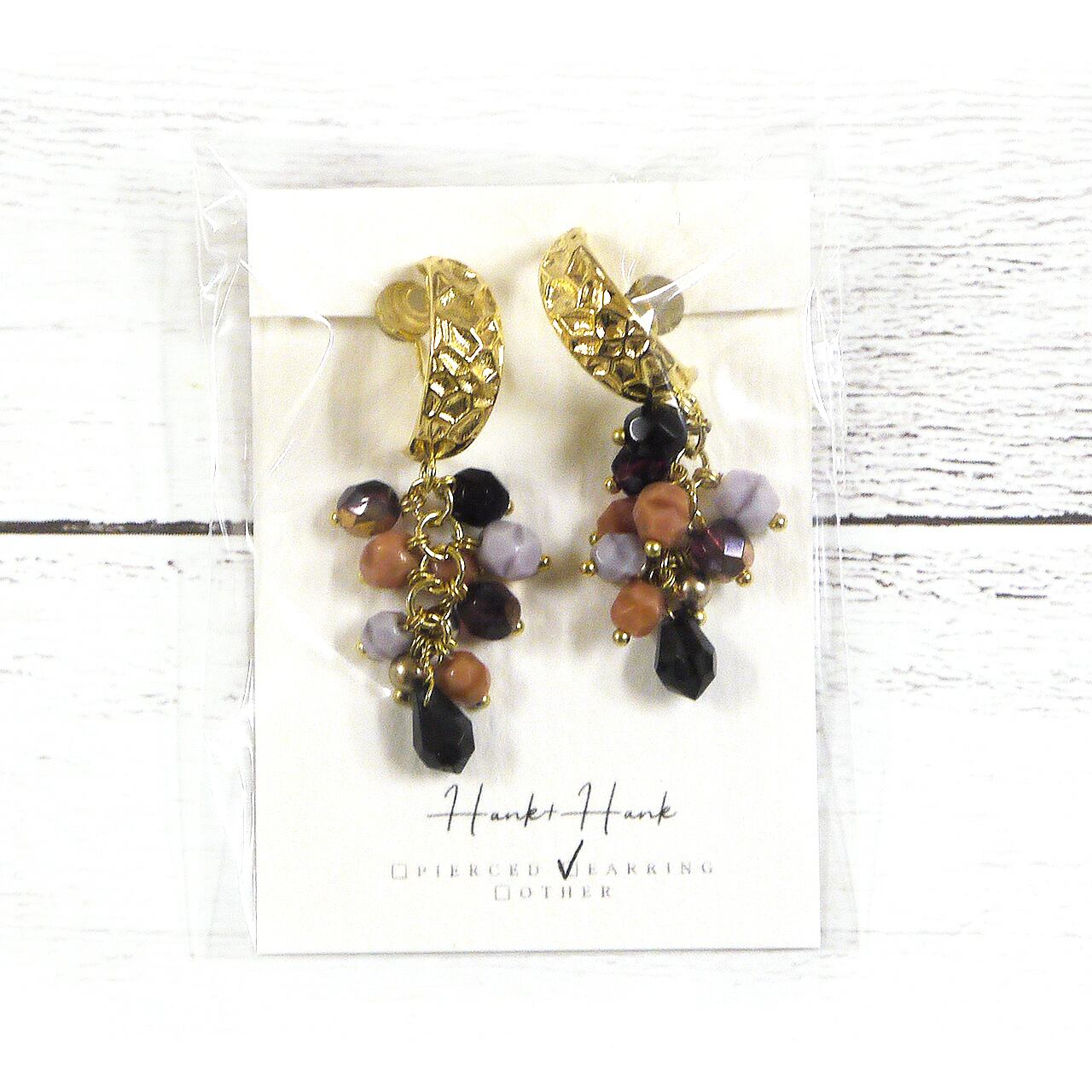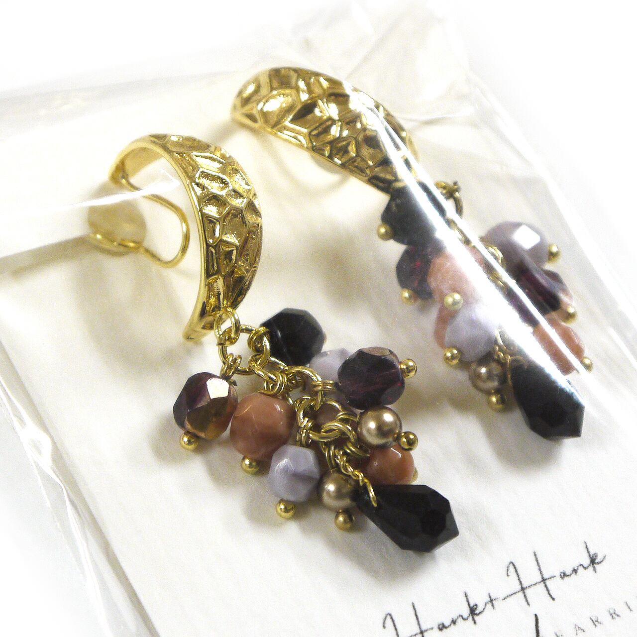 【Hank+Hank】つぶつぶゆらゆらイヤリング(ガーネット×オニキス)/イヤリング