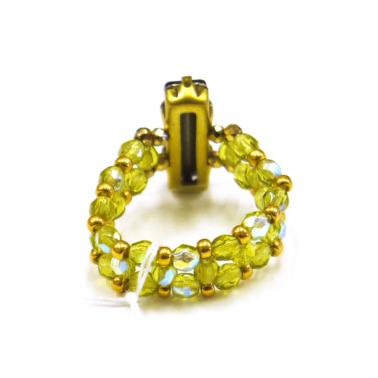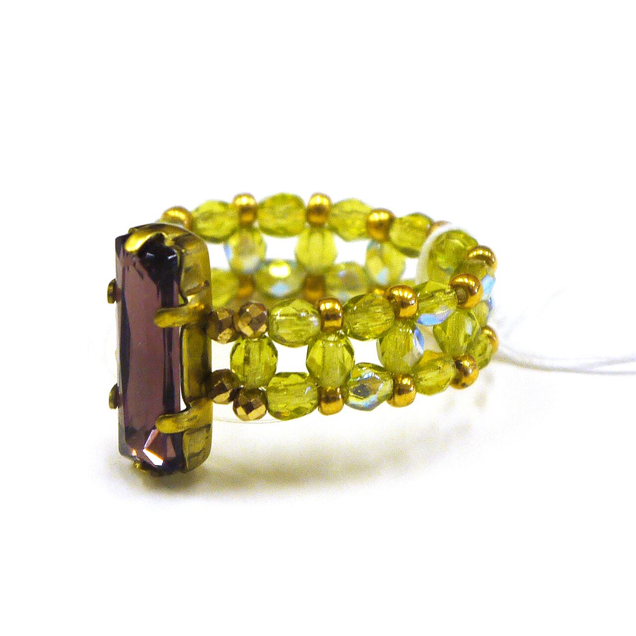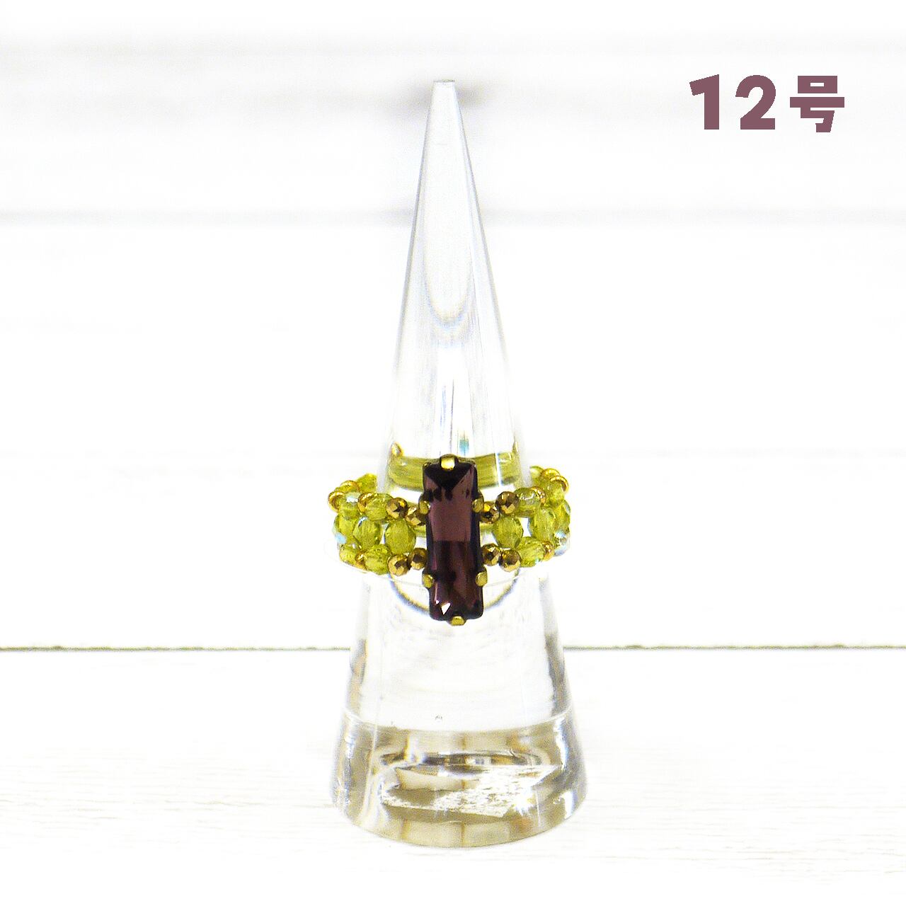 ビーズ編みと縦長のガラスストーンで作られた指輪です。