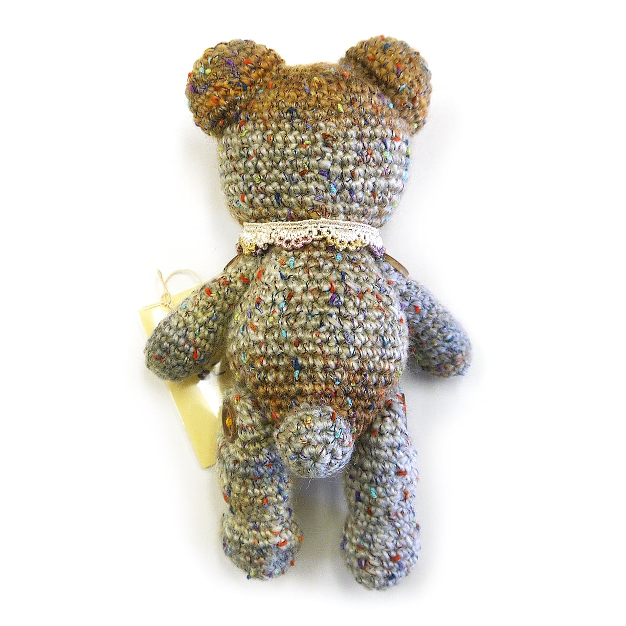 手足が稼働する、テディベアタイプのあみぐるみ。首元にはレースとお星さまのチャームを付けた、カントリーカラーの子です。
