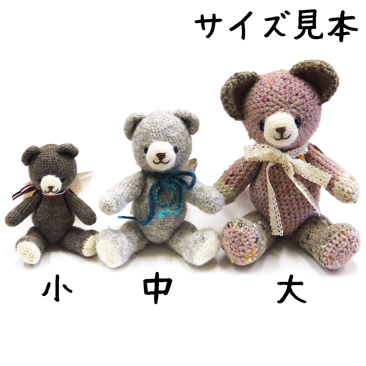 しっかり詰まった固さのある触り心地で、お座りも得意。あみぐるみならではの温もりと一緒に遊べる楽しさを併せ持っています。
