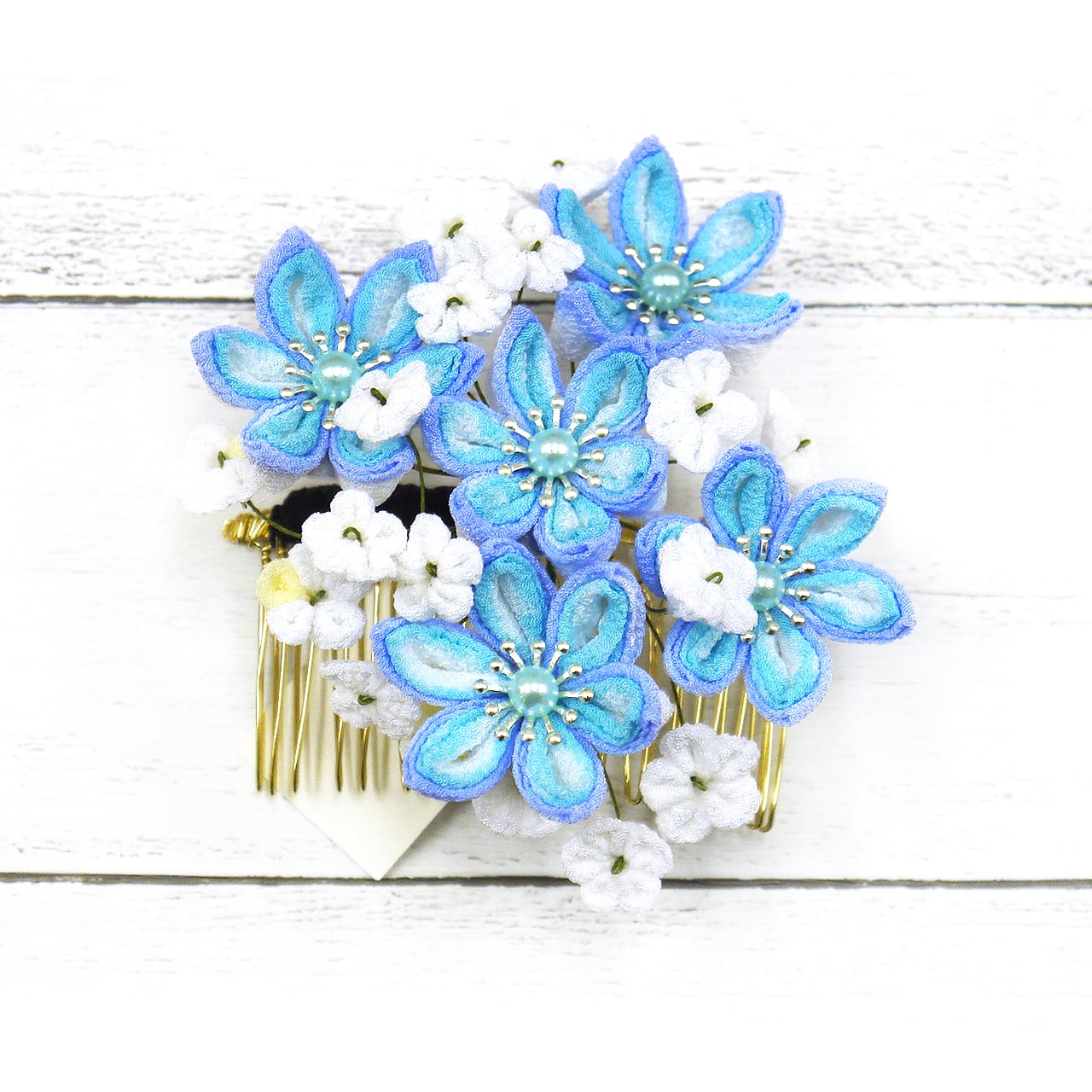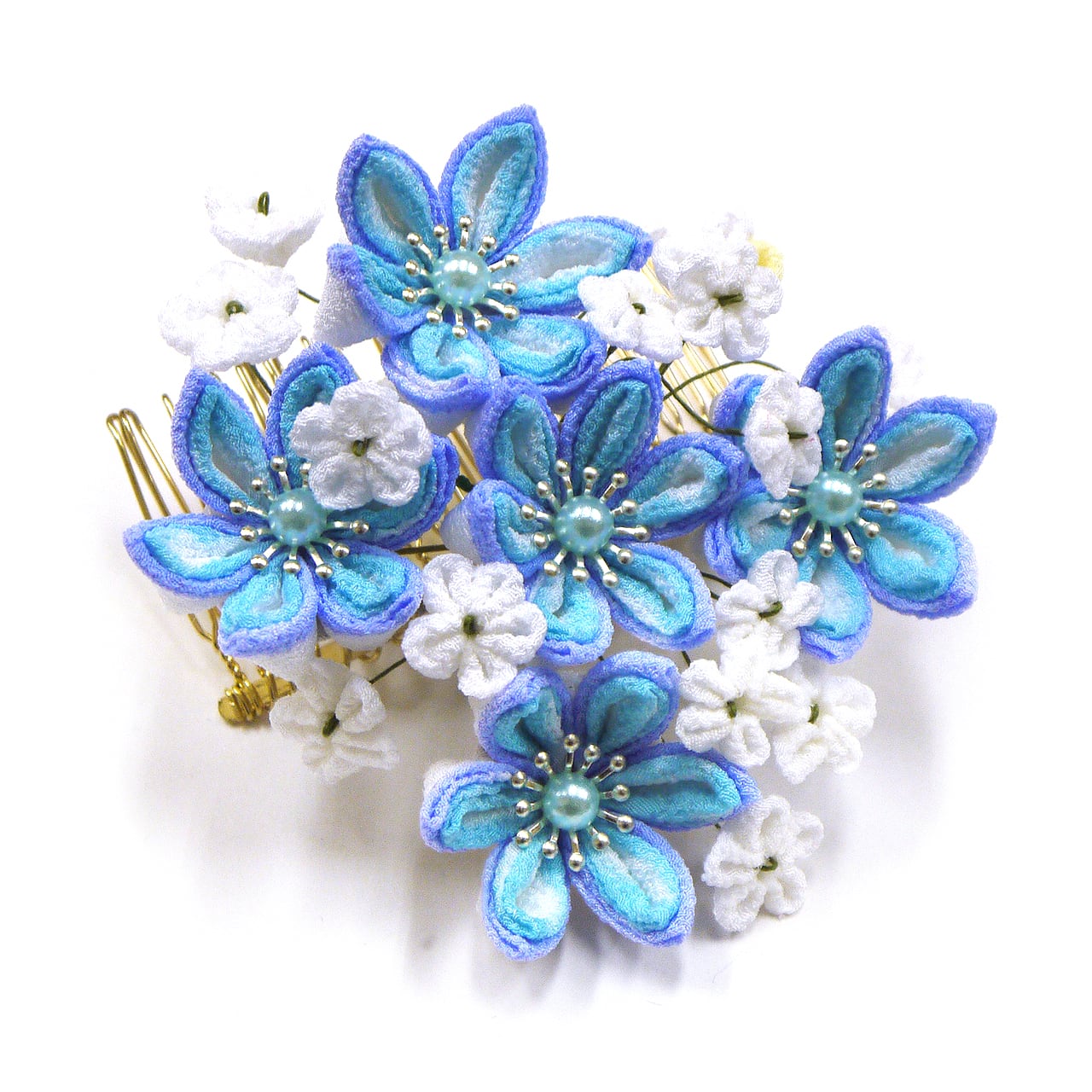 美しい雪乃花をつまみ細工で表現したヘアコームです。