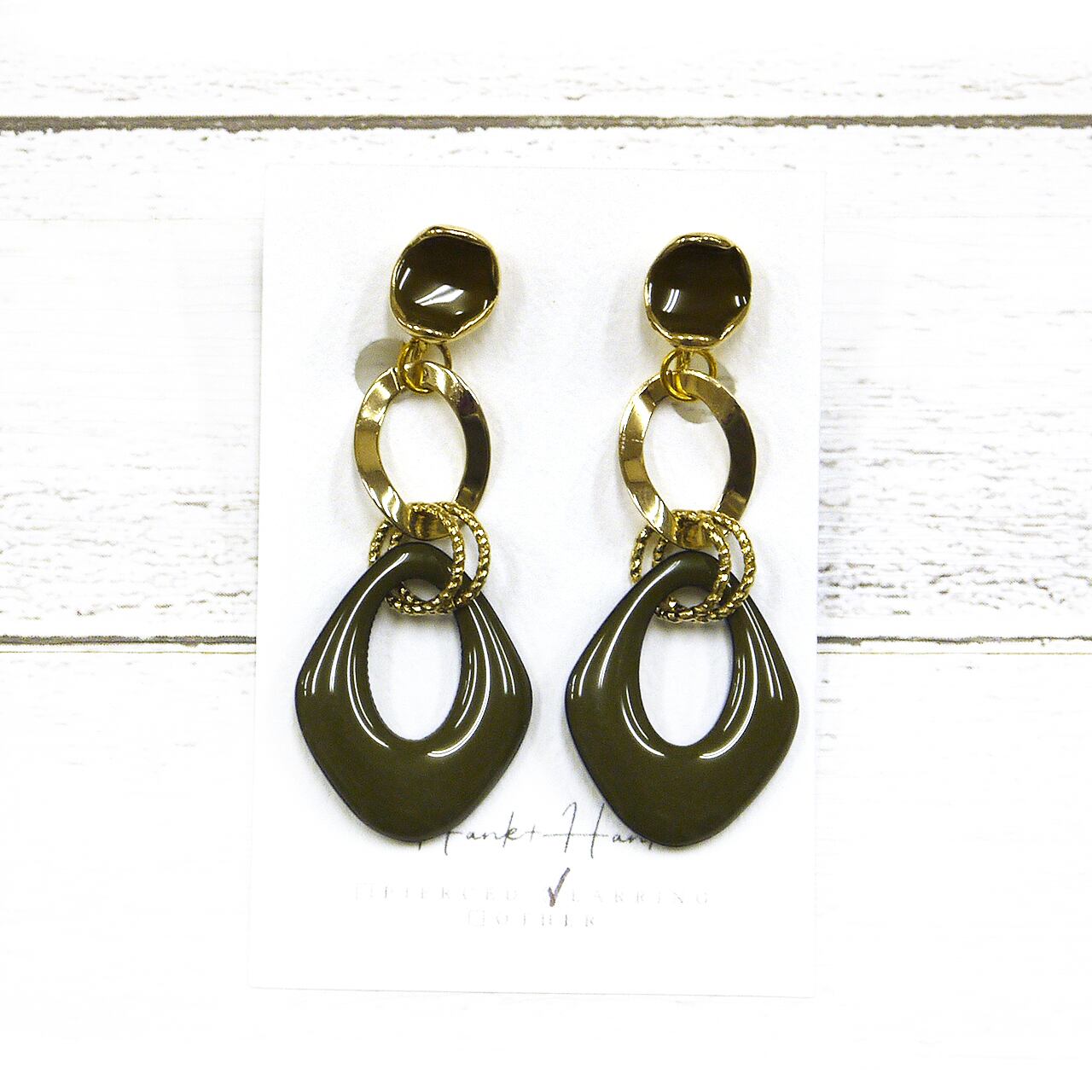 【Hank+Hank】オリーブ×ゴールドイヤリング/イヤリング