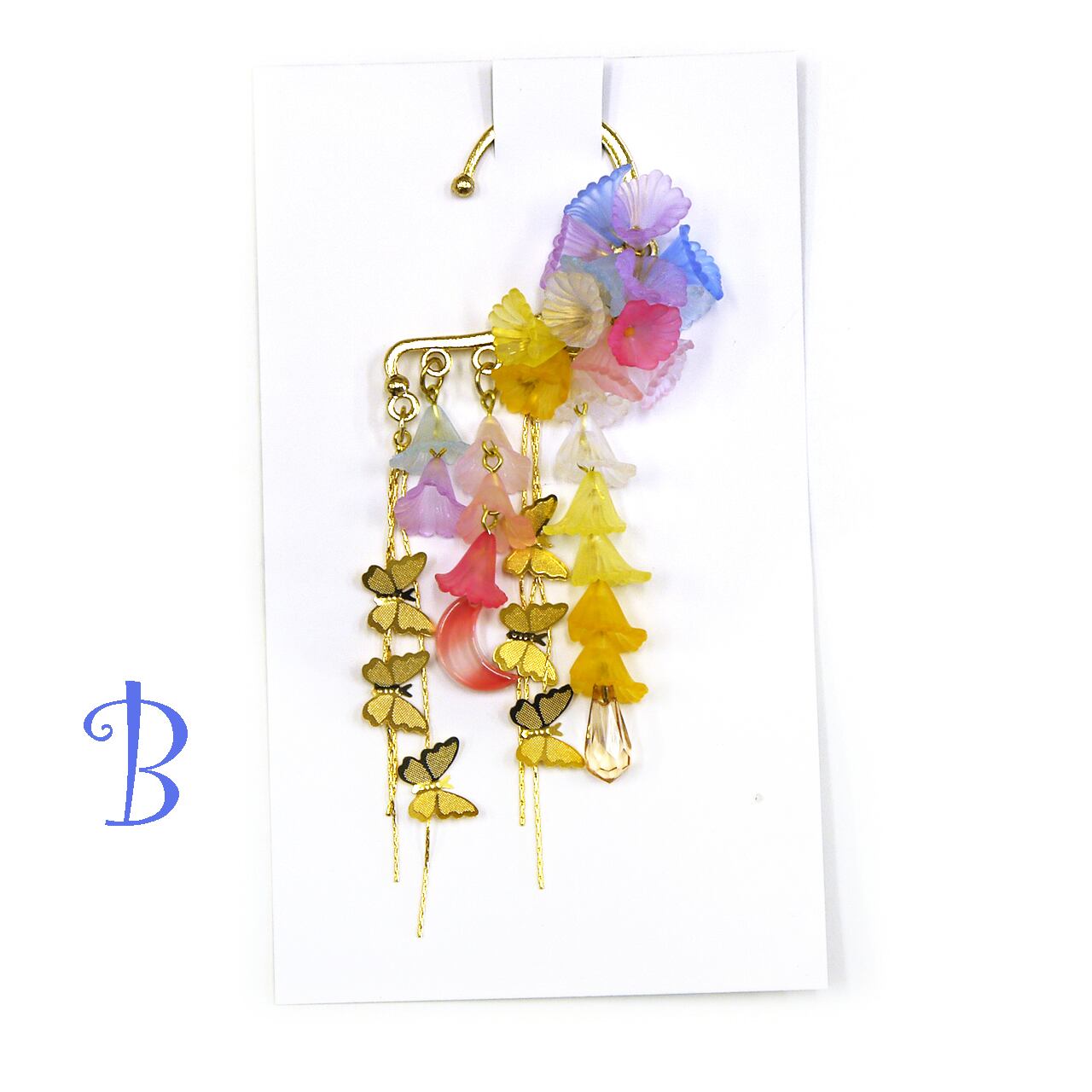 まるでファンタジー作品の妖精のような気分が味わえる、お花を身に着けるアクセサリー。耳にお花が咲いたようになり、蝶々がひらひらと舞います。